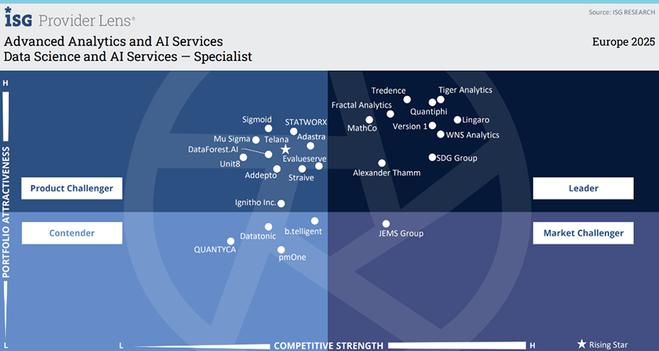 We’re named as a Leader in Data Science & AI services and Data Analytics & Modernization services across Europe and the US.