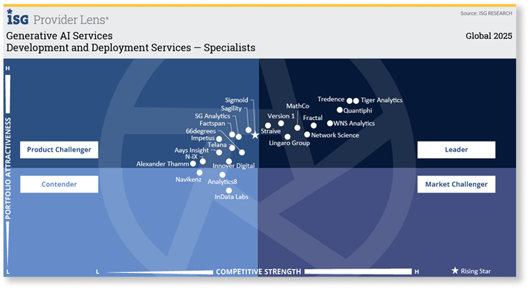 ISG recognized Lingaro as a Leader in GenAI services — across both Strategy & Consulting and Development & Deployment.